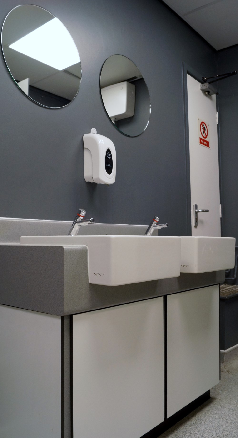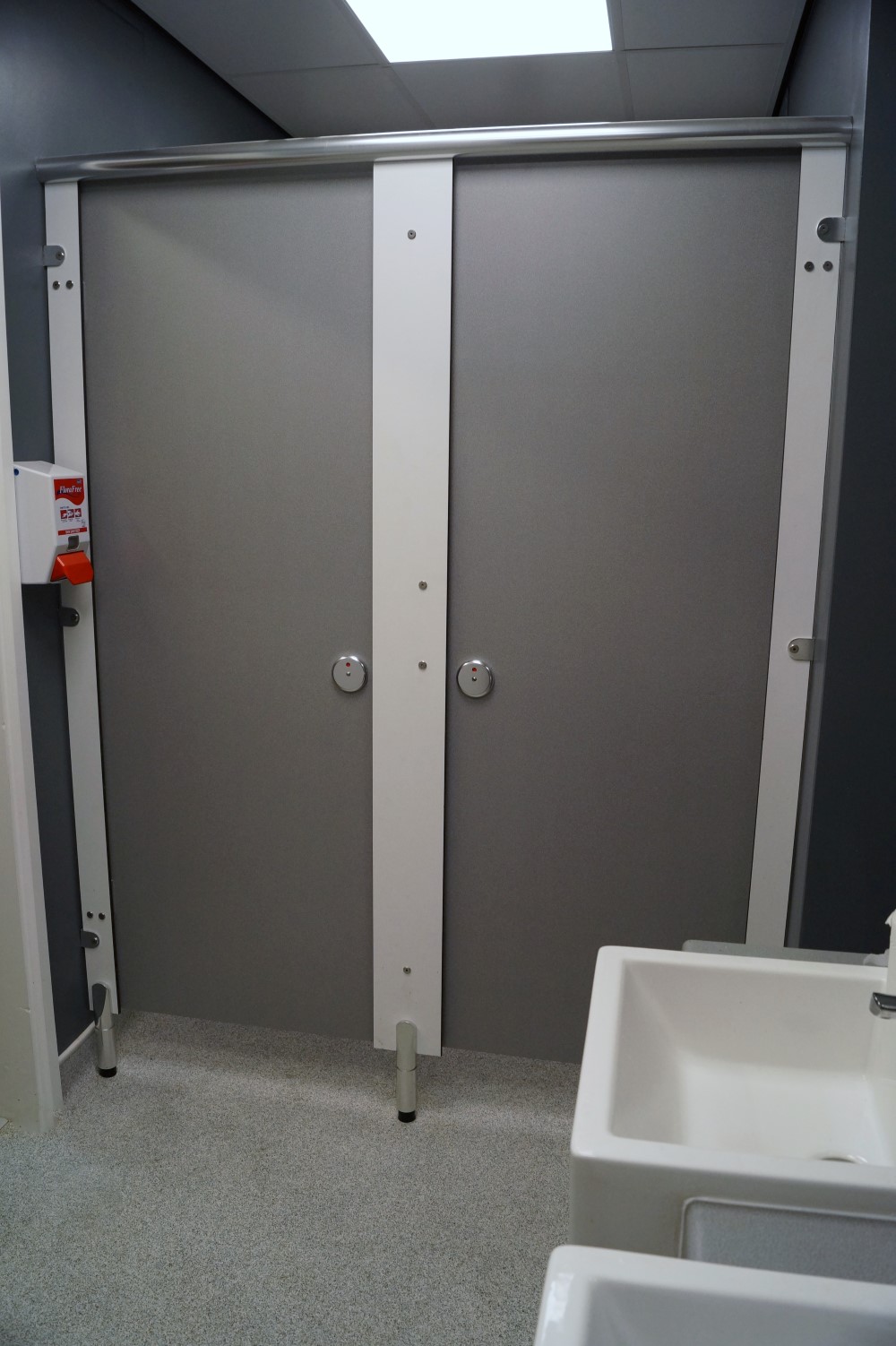 A local food producer approached us as a result of viewing our website. They were considering refurbishing their commercial staff toilets. During our first meeting, Fourayes Farm Ltd had expressed the need for the facility to be easily cleanable and would like to have an additional toilet cubicle. After changing the positions of a few items we were able to fit in the much needed toilet. The remainder of the toilet area included using SGL, coved vinyl flooring. Additionally, easy wipe ceiling tiles, acrylic eggshell paint and LED lighting were also in our specification.