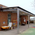 The academy was concerned that the existing canopy, at the front of the school building, was too high. Due to the height of the canopy, wind and rain could easily blow underneath and make the area unusable. Initially they requested that we submit a quotation to supply and install a new, lower, canopy which we were happy to do. On reflection, we believed that we could save the school a large amount of money by adjusting the existing canopy by reducing the height. We suggested this to the school and explained that by lowering the current canopy they would save money and the results would be just as effective. When the works were completed the area was much more enclosed making it more weatherproof. The school canopy adaption was an ideal solution.