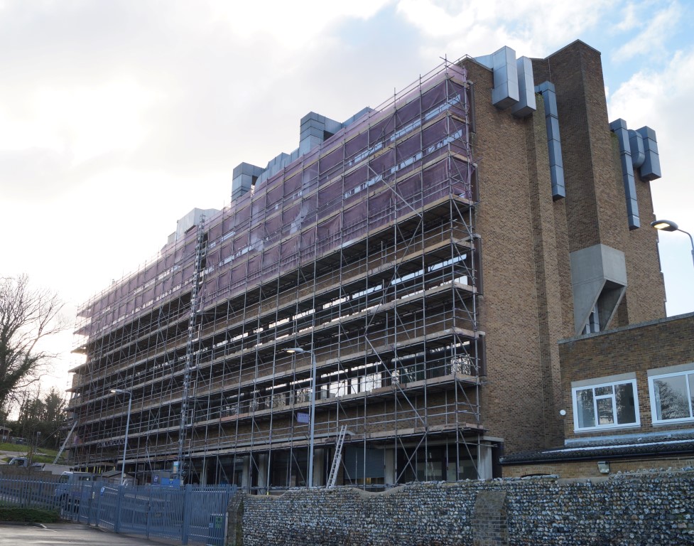 Part of the works included repointing the brickwork of the same elevation that was having the windows replaced. The size of the building meant that scaffolding was required to install the windows. It made sense to carry out the repointing works while the scaffolding was up for the window works. In fact the repointing was carried out first and was followed by the glazing team installing the new windows.