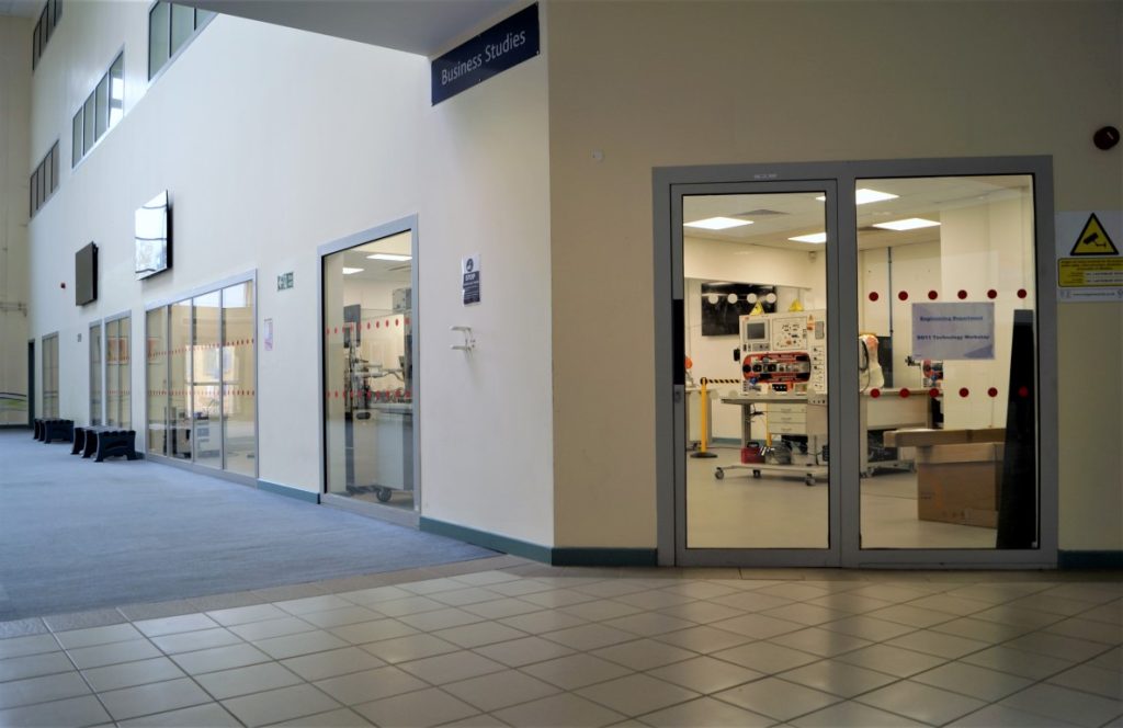 The college didn’t have a large enough, ready-made area to utilise for the new robot room. However, they had identified a part of the campus that could be used. The area consisted of two offices and a classroom which, when reconfigurated, would supply enough space for the new manufacturing course.