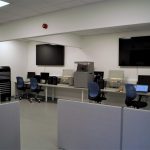 The works included the removal of dividing walls to create one large space. We created additional large internal screens to promote viewing accessibility along with external television screens so that the works can be visualized from outside of the robot room. The new room was transformed and decorated throughout. Additionally, suspended ceilings, new flooring, upgrading of the heating system and LED lighting was also carried out. New power and data cables were also installed to power the new equipment as well as provide future proofing for any addition developments that college may have at a later date.