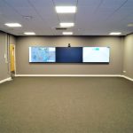 We were asked to transform traditional classrooms into the new computer rooms which included complete refurbishment. One of the key factors was to board up windows to creat more flat space for screens. In addition it is not possible for sunlight to effect the screens with glare. New LED lighting and new flooring was installed to complete the look.