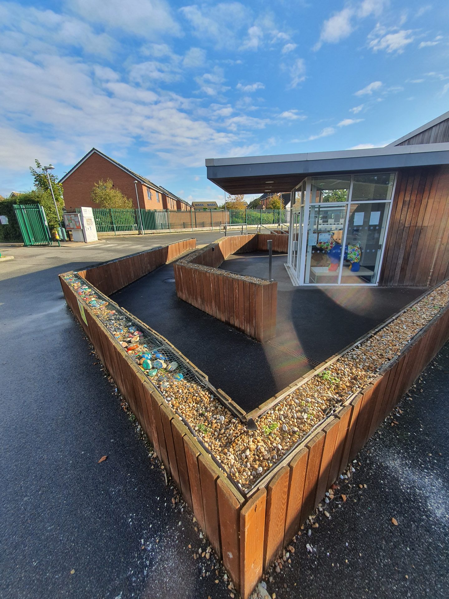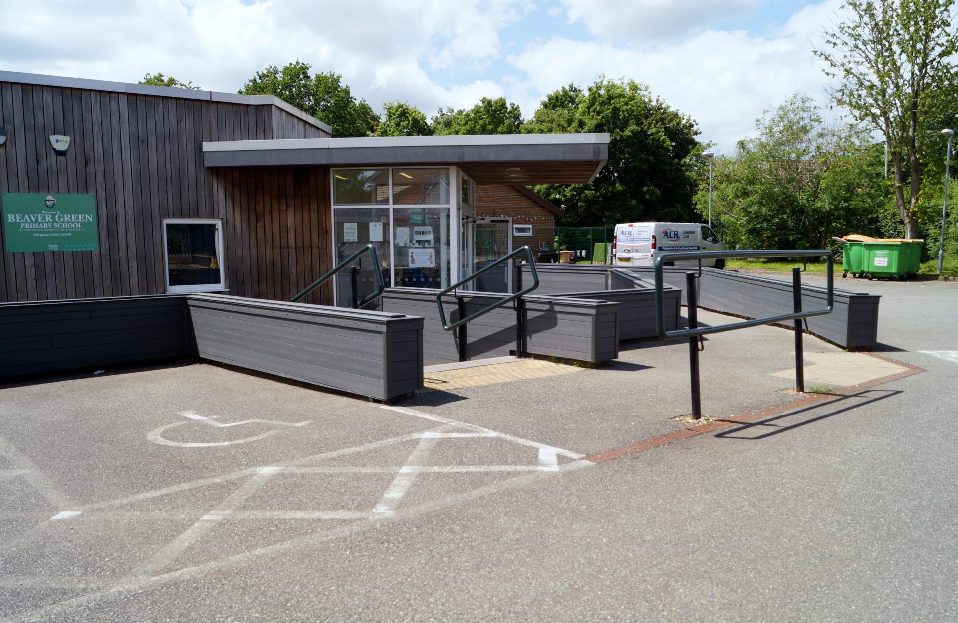 Beaver Green Primary School had old planters leading up to the school reception. Unfortunately, they had seen better days and the original materials used had come to the end of their life with the wood rotting away. The deteriorating planters were causing safety concerns for the school. The school asked us to come up with some ideas for a solution which would include little or no maintenance.
