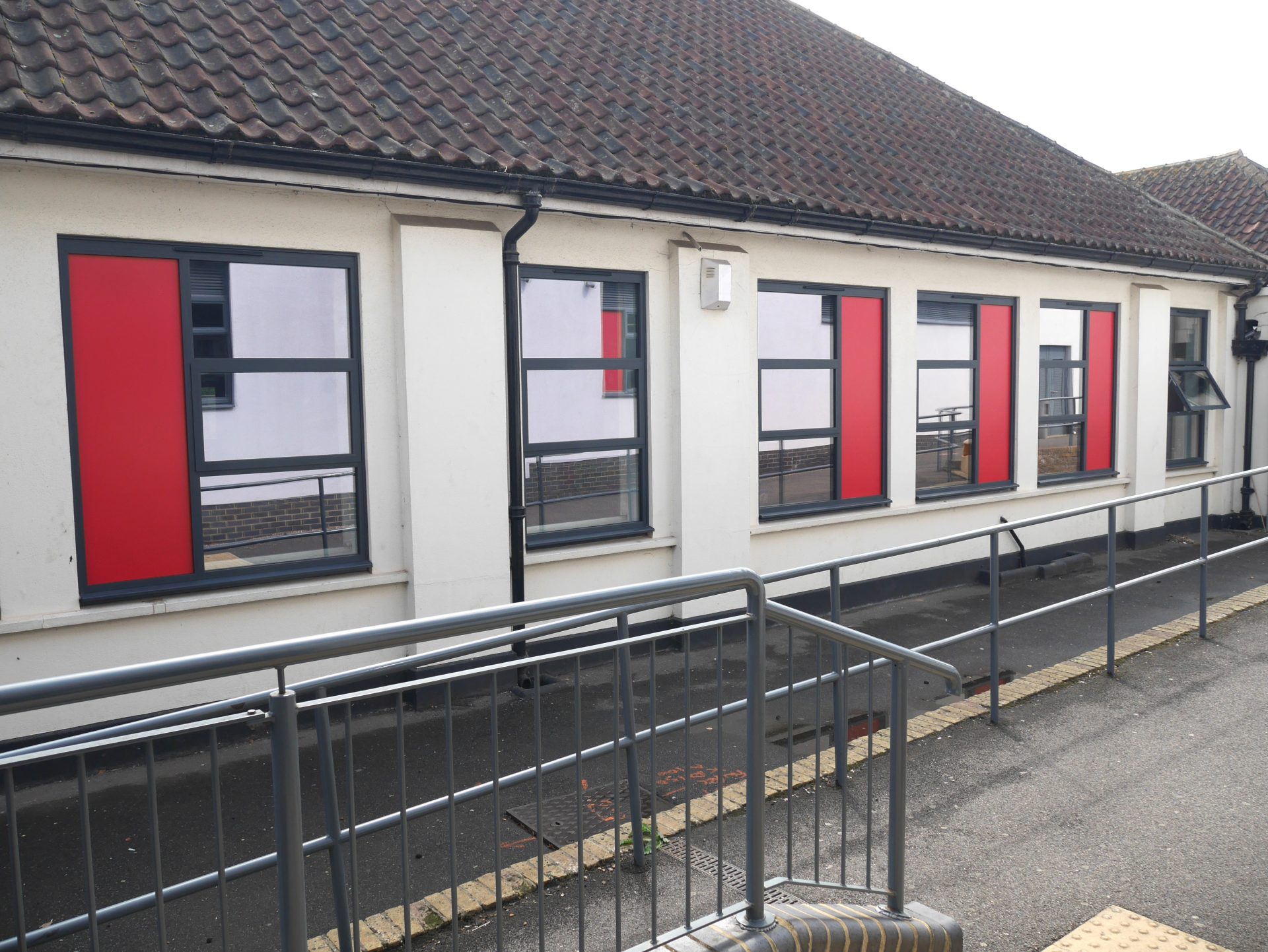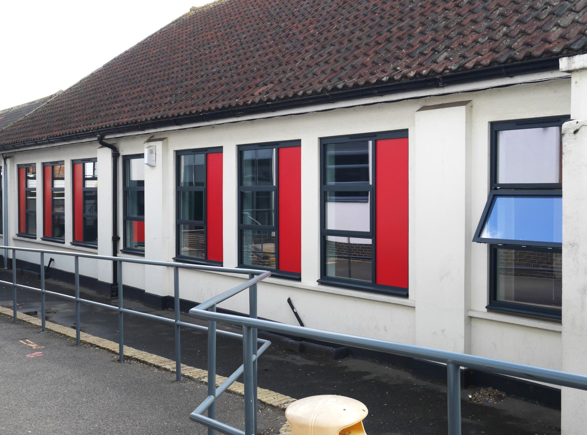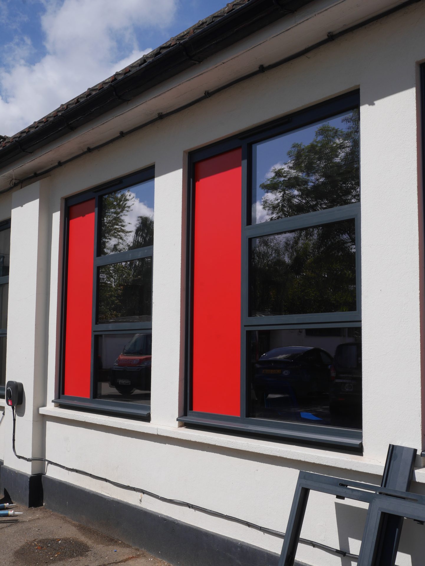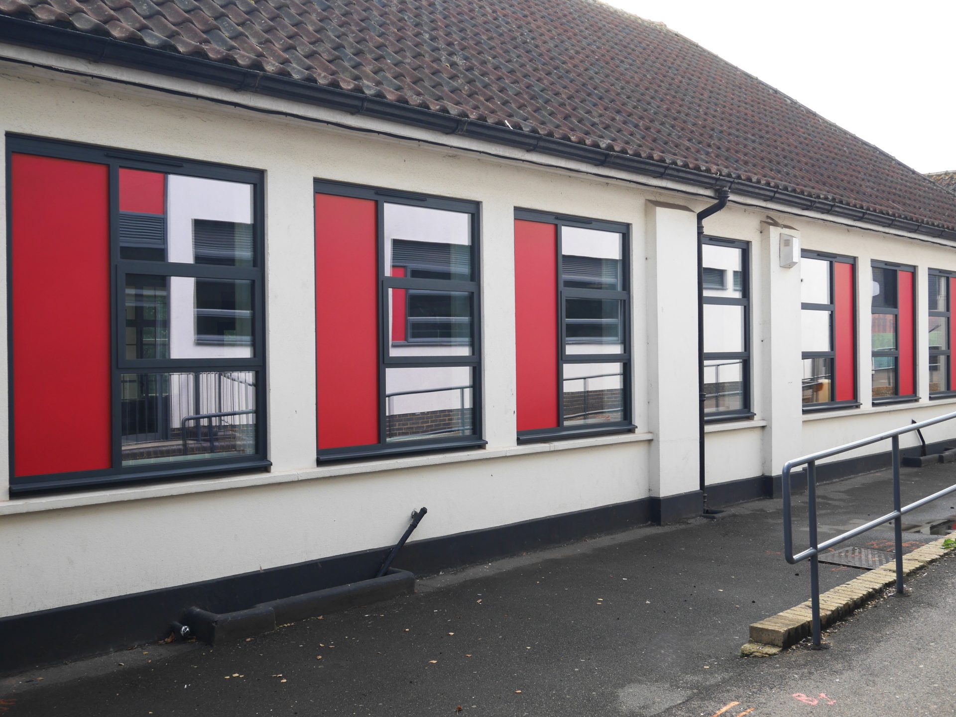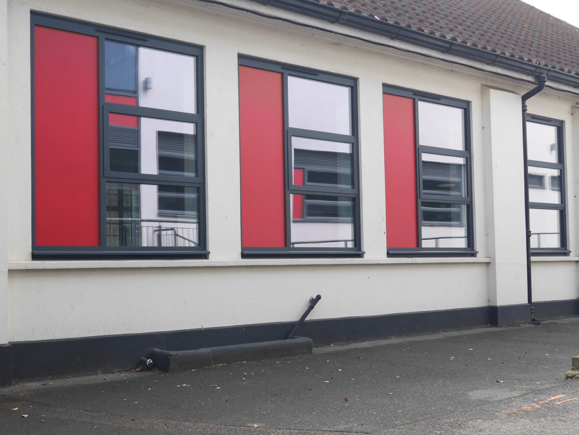 Furthermore, the school requested that the new installations match the appearance of previously upgraded areas on site. This included maintaining consistency in frame colour, design, and detailing. In addition, red-coloured infill panels were incorporated to reflect the school’s identity and complement other areas of the building finished in the same tones. Consequently, the new windows not only perform better but also enhance the school’s overall visual continuity.