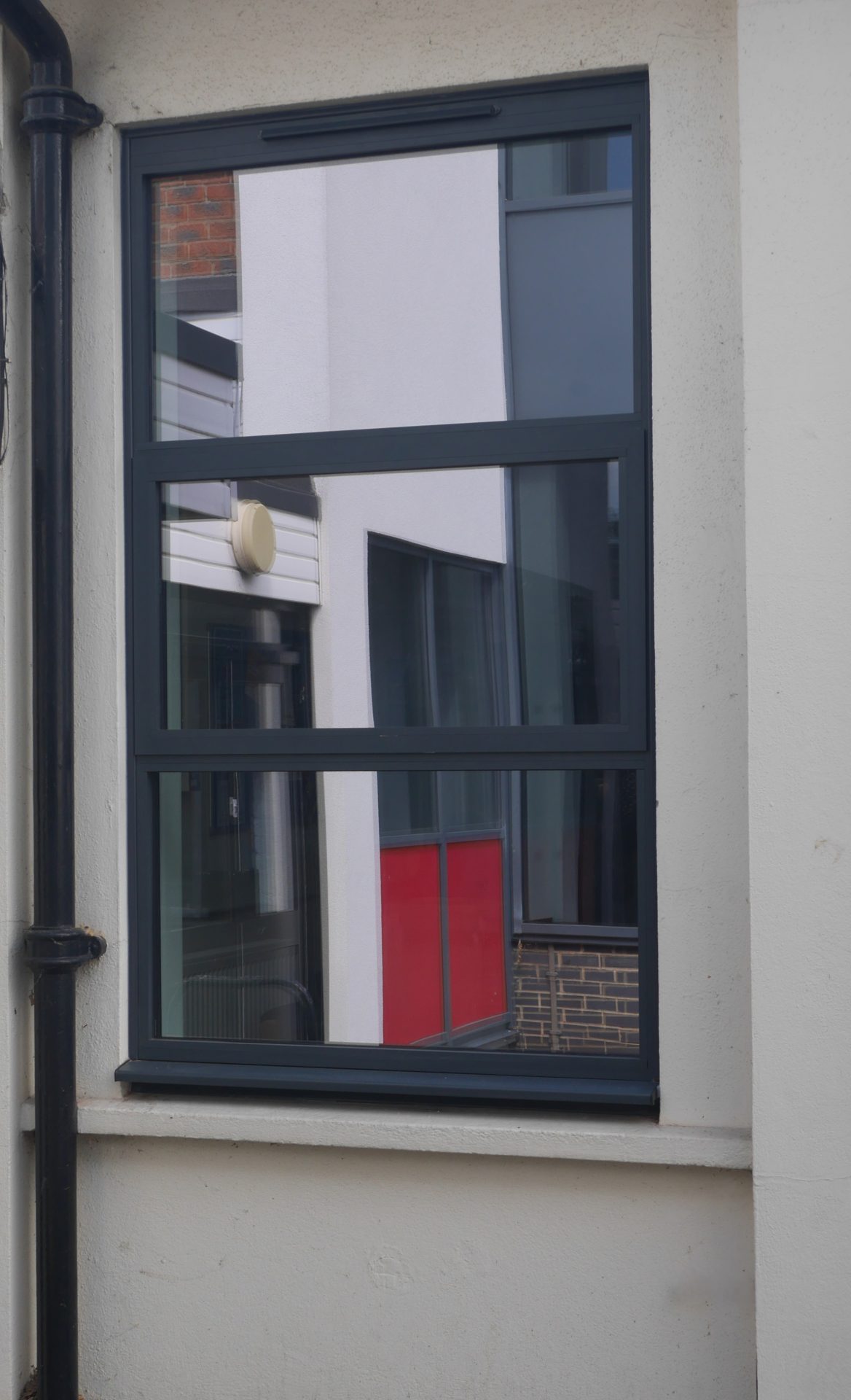 To address these issues, we replaced the original windows and doors with high-quality aluminium, double-glazed units. The frames were finished in a textured anthracite grey, offering both a sleek, modern aesthetic and exceptional durability—qualities that are essential in a high-traffic educational environment.