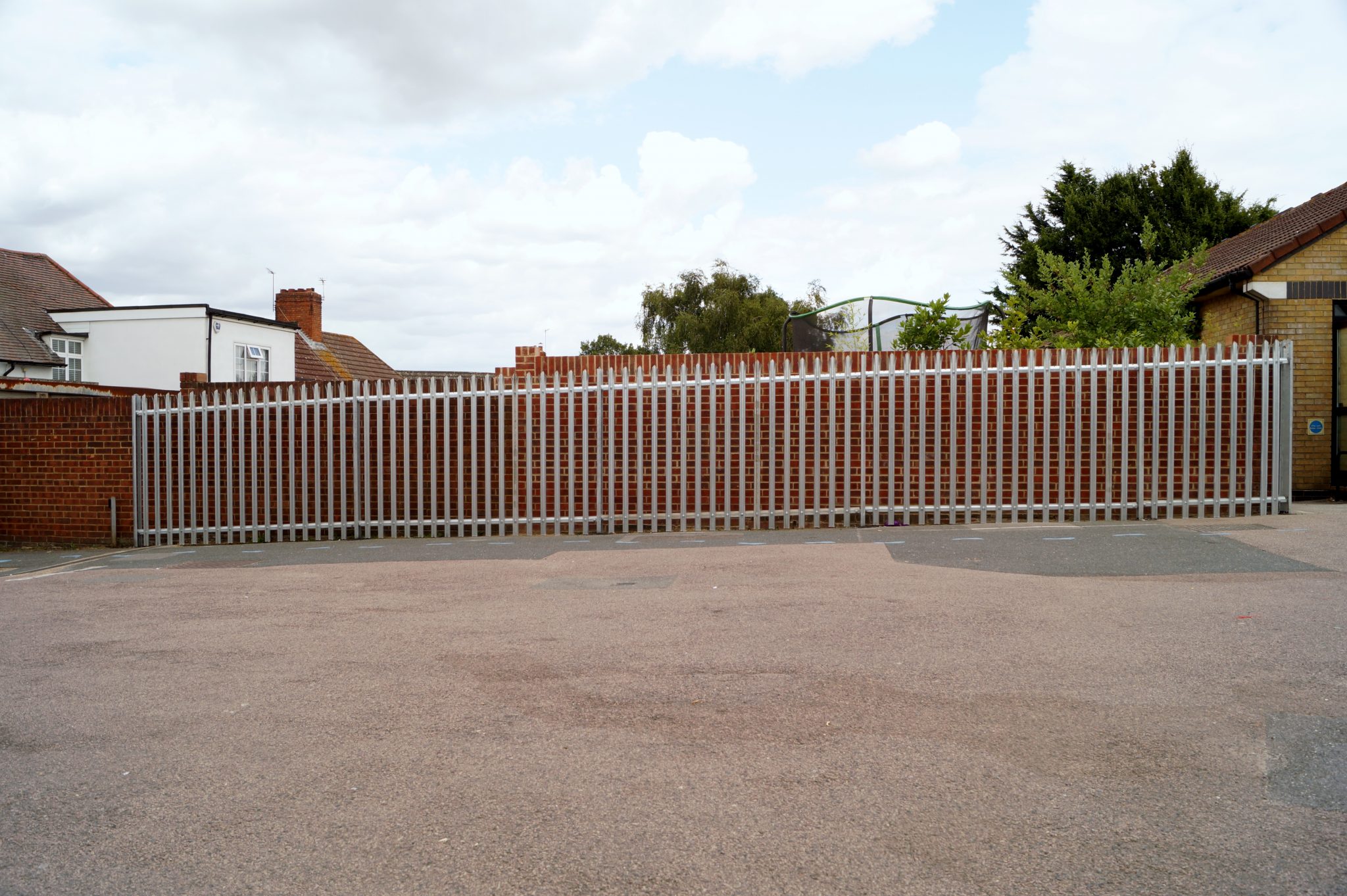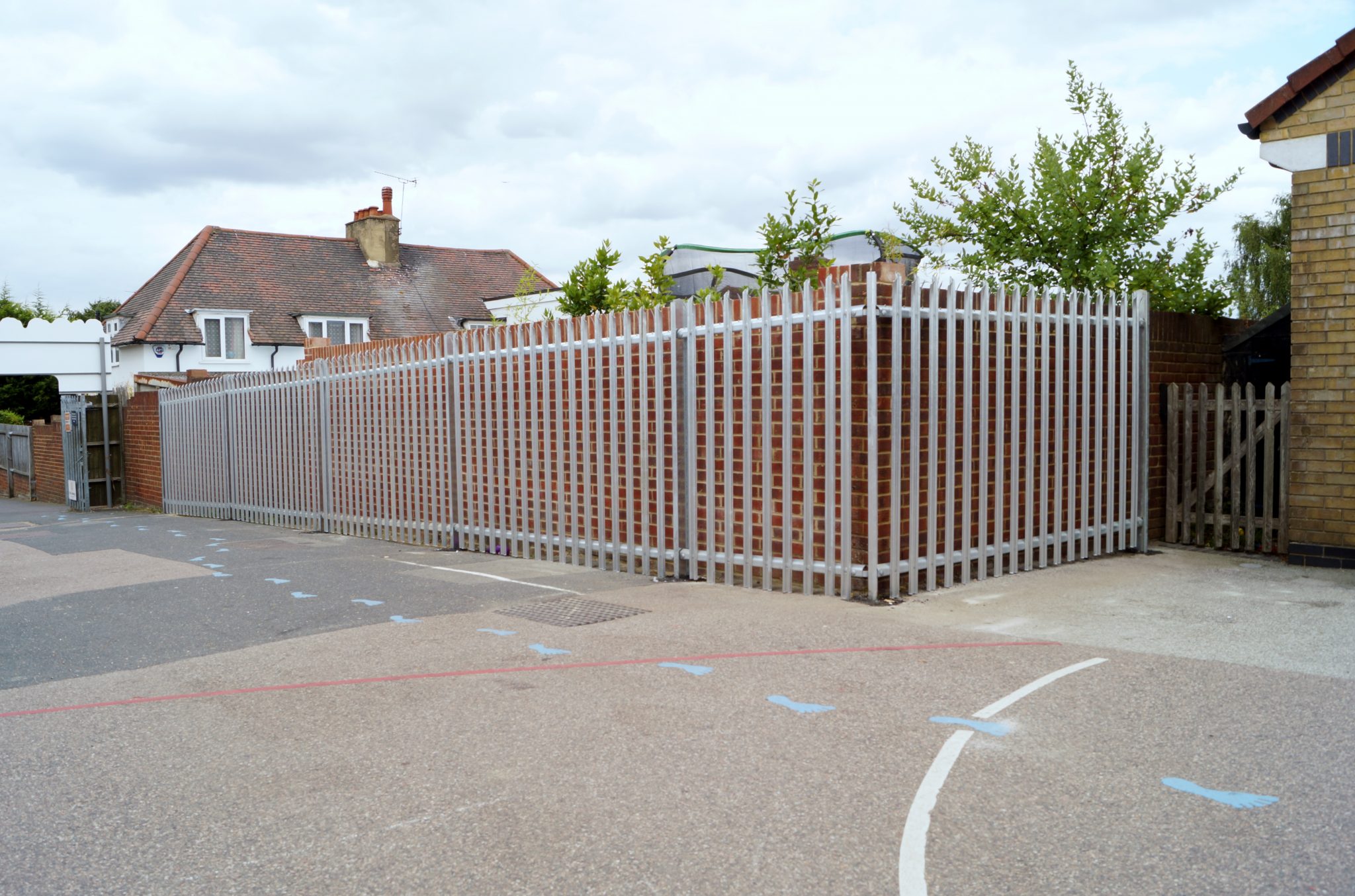 We erected this school palisade fencing at Barnehurst Junior School in Bexleyheath. The school had recently had a wall rebuilt that bordered onto a domestic dwelling. The original wall had become damaged over time and the school wanted it to be protected. We erected the fencing in one day and this now protects the wall from anyone climbing or leaning on it.