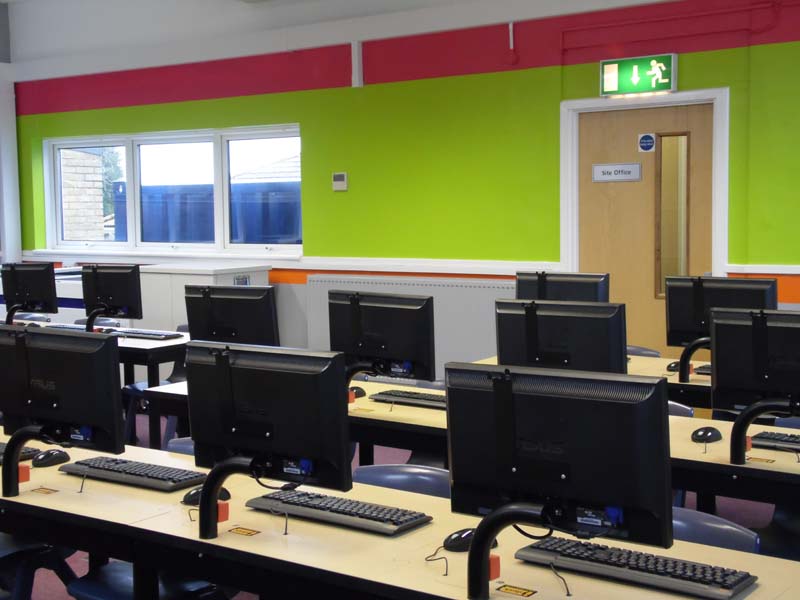 This school ICT suite refurbishment works were carried out at short notice. The works included altering the heating system, forming a new door set as well as redecorating the whole room. We had a tight deadline to follow which enabled the client to utilise the new facilities as soon as possible. Consequently, this allowed the clients nominated contractor to install the new desks and computers to suit the new layout.